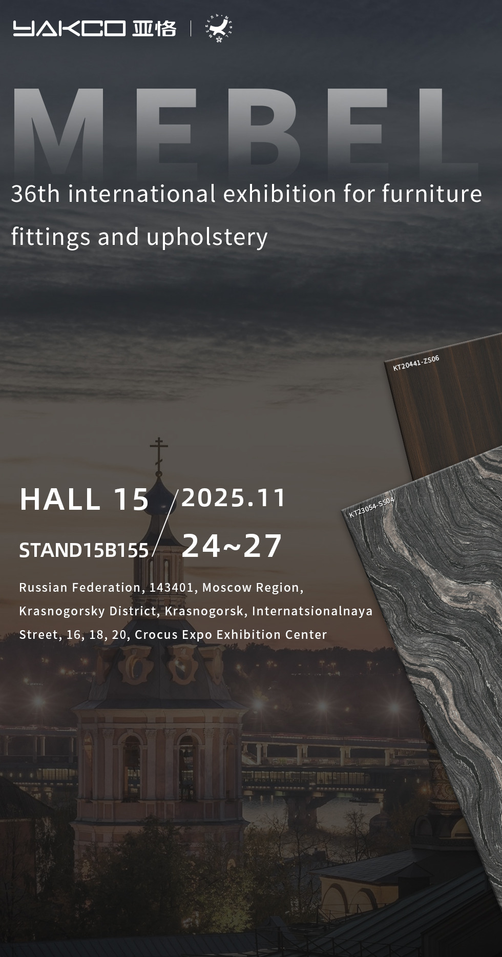 YAKCO New Materials (Jiangsu) Co., Ltd. kunngjør offisielt sin deltakelse i den 36. internasjonale utstillingen for møbelbeslag og møbeltrekk (MEBEL) som skal holdes i Moskva, Russland. Utstillingen vil finne sted fra 24. november til 27. november, og selskapet vil ønske globale besøkende velkommen på stand nr. 15B155.